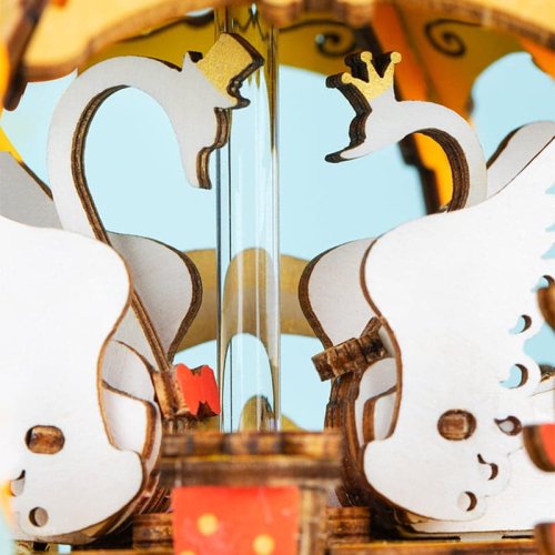 Detailný farebný model rozprávkového kočiara s labuťami. Skladačky hracích skriniek Robotime sú ponúkané v mnohých podobách, prírodných aj farebných, líšiacich sa nápaditými pohyblivými detailmi sprevádzajúcimi zvuk. Nezaskočí Vás svojou náročnosťou a po zostavení skrášli poličku. Nechajte sa unášať známymi melódiami, každá skrinka hrá inú, zodpovedajúcu svojej výslednej podobe. Kvalitné naťahovacie 18 tónové strojčeky s japonskými komponentmi zaručujú čistý a dostatočne hlasný prejav. Skladačka je dodávaná v nezloženom stave, balená v krabici. Vybavené detailným návodom na zostavenie. Hlavné vlastnosti:melódia Born Free165 precízne vyrezaných potlačených dielikovstredná obtiažnosť zostavenia