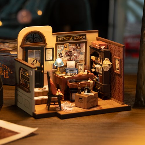 Nahliadnite do kancelárie skúseného detektíva, ktorý je práve na stope záhadnému zlodejovi! Objavte svet detailných miniatúr Robotime prichádzajúcich v podobe jedinečných výtvarných stavebníc. Pri ich zostavovaní strávite príjemné chvíle a výsledkom môžete skrášliť zákutia svojej izby. Takmer každá súprava je vybavená LED osvetlením, ktoré spolu s farebnosťou výsledného modelu vykúzli útulnú atmosféru. Výtvarné sady sú rozdelené hneď do niekoľkých rôznych radov a tvoria výnimočne pestrú ponuku. Je Vám bližší obytný priestor, podnik, alebo niečo iné? Ľahko si vyberiete! Každá zo stavebníc je dodávaná v rozloženom stave. Stavba zahŕňa prevažne farbenie a lepenie už narezaných dielov z preglejky, prípravu kartónových alebo látkových prvkov a papierových potlačí. V balení spolu so všetkými súčasťami a podrobným návodom nájdete lepidlo, farby, štetec aj iné nástroje. Na pohodlnú vstavbu osvetlenia odporúčame prichystať si polguľaté kliešte. Spravidla si pri zostavovaní a úpravách ale vystačíte s obyčajnými nožnicami, ktoré doma určite vždy nájdete. Hlavné vlastnosti: obsahuje diely stavebnice, lepidlo, farby, štetec a i. odhadovaný čas zostavenia 10 hodín LED osvetlenie (2×AAA batérie nie sú súčasťou balenia) stavba vyžaduje vlastné nožnice a môže obnášať aj použitie ďalšieho drobného náradia