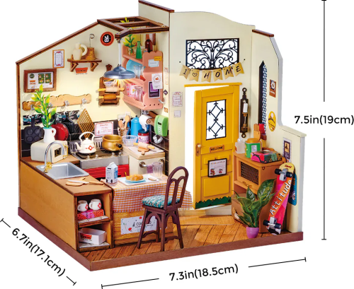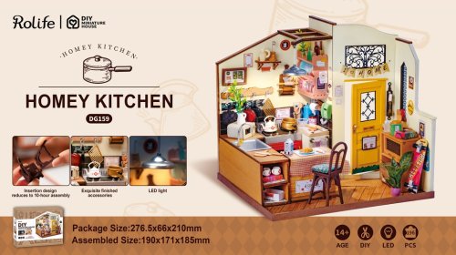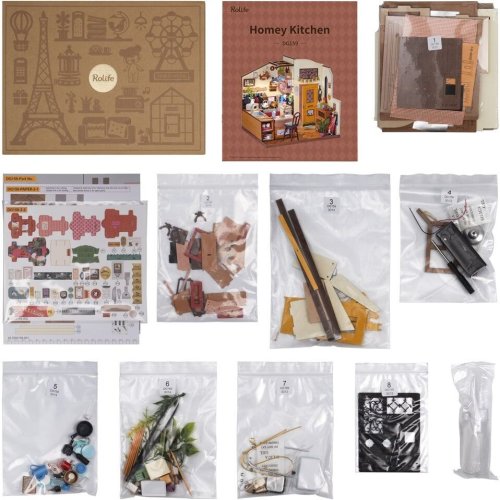 Tento model kuchyne je taký útulný a teplý, ako by ste očakávali od vlastnej domácnosti. Model je prispôsobivý a dovoľuje vám vytvoriť vlastnú verziu životného štýlu, ktorý ste vždy chceli. Je vyrobený s ohľadom na detail, s krásnymi hrncami a panvicami, dizajnom klasického usporiadania a očarujúcim osvetlením, ktoré pridáva atmosféru. Laserom vyrezávané dieliky z 2 mm lipovej preglejky. Jednotlivé dieliky sa vytláčajú priamo z preglejky, postupujte postupne a opatrne. Kvalitné, bezpečné a netoxické materiály. Rozvíja technické myslenie, predstavivosť, cit pre detail a jemnú motoriku. Prekrásny darček pre väčšie deti aj dospelých. Po dokončení pôsobivá dekorácia. Vyžaduje batérie - 2 x AAA, LR03, AM4 1,5 V (nie sú súčasťou balenia).