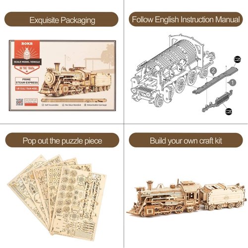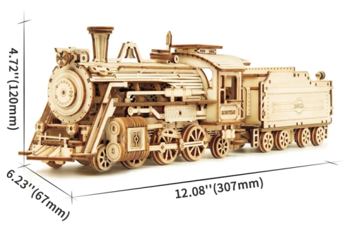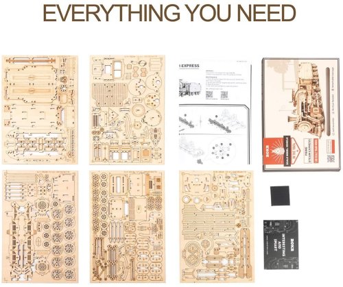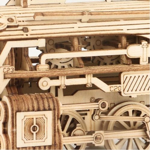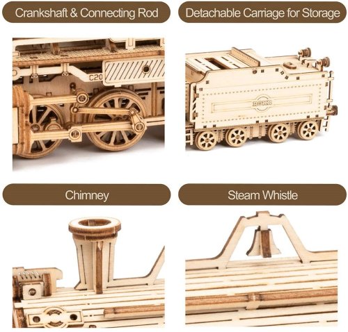 Prepracovaný model parnej lokomotívy v mierke 1:80 je určený všetkým fanúšikom techniky a obdobia vrcholiacej priemyselnej revolúcie. Súčasťou stavebnice je taktiež tender ponúkajúci drobný úložný priestor pre upomienkové predmety, či cennosti. Zostavená miniatúra je určená na vystavenie a dekoráciu, nie je preto pohyblivá. Prírodná úprava je univerzálne vhodná do každého interiéru, model však môžete prispôsobiť a nafarbiť podľa vlastných predstáv. Nezabudnite sa nám svojou úpravou pochváliť! Skladačka je dodávaná v krabici spolu s podrobným ilustrovaným návodom na zostavenie. Hlavné vlastnosti:308 precízne vyrezaných dielikovstredná obtiažnosť zostaveniedrobný úložný priestor