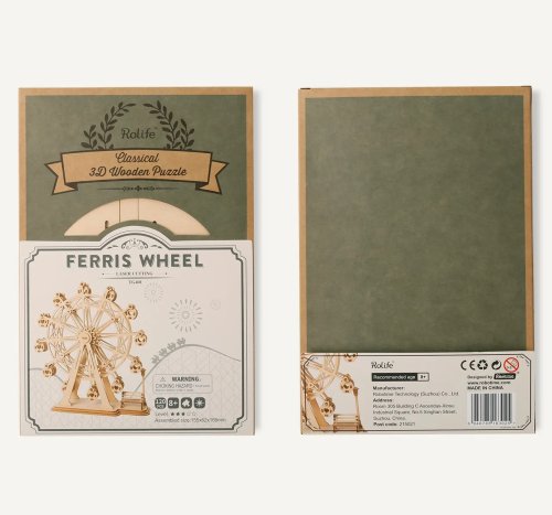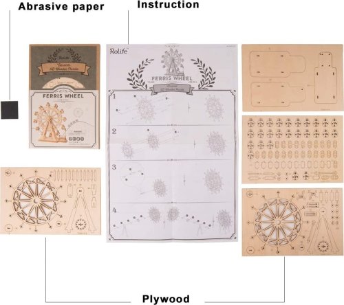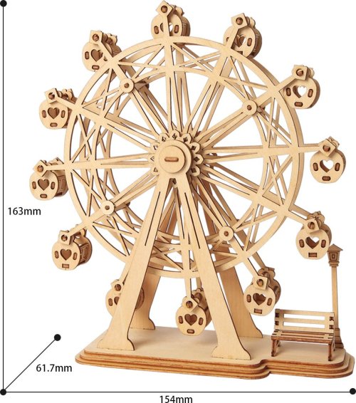 Detailný model známeho kolotoča. Patria do radu skladačiek, ktoré sú určené na vystavenie, nie sú interaktívne a nemajú žiadne pohyblivé diely. Skladačka je dodávaná v nezloženom stave, balená v krabici. Vybavené detailným návodom na zostavenie. Hlavné vlastnosti: 120 precízne vyrezaných dielikovnízka obtiažnosť zostavenia