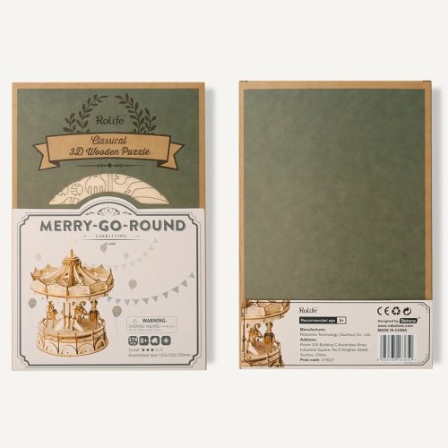 Detailný model klasického kolotoča. Patria do radu skladačiek, ktoré sú určené na vystavenie, nie sú interaktívne a nemajú žiadne pohyblivé diely. Skladačka je dodávaná v nezloženom stave, balená v krabici. Vybavené detailným návodom na zostavenie. Hlavné vlastnosti:178 precízne vyrezaných dielikovnízka obtiažnosť zostavenia