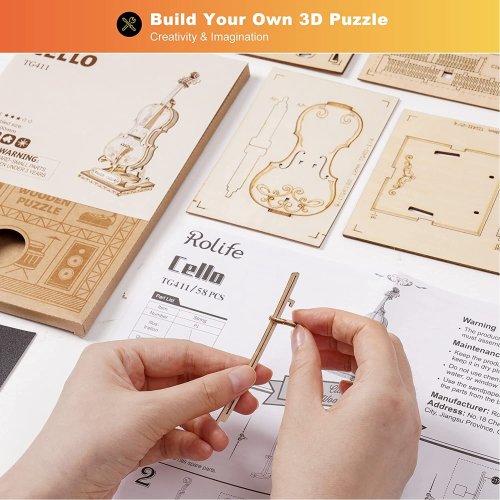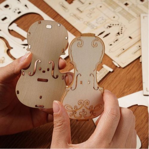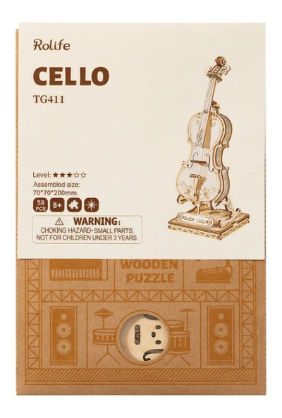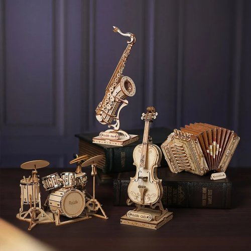 Detailný model hudobného nástroja. Patria do radu skladačiek, ktoré sú určené na vystavenie, nie sú interaktívne a nemajú žiadne pohyblivé diely. Skladačka je dodávaná v nezloženom stave, balená v kartónovej obálke. Vybavené detailným návodom na zostavenie. Hlavné vlastnosti:58 precízne vyrezaných dielikovnízka obtiažnosť zostavenia