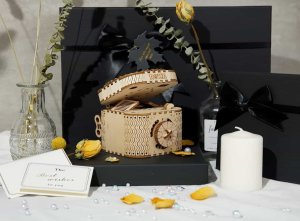 Pre všetkých Vašich miláčikov. Stavebnica šperkovnice z preglejky. Ponúka dvojicu priehradok, menej zabezpečenú vo veku a kódom zaistenú hlavnú priehradku v tele skrinky. Priestor vo veku je možné otvoriť pootočením kolesa na jeho vrchnej strane. Hlavný priestor je možné zaistiť trojmiestnym kódom, je možné užívateľsky zvoliť jednu z mnohých stoviek číselných kombinácií. Na otvorenie zadajte prvú číslicu otáčaním proti smeru hodinových ručičiek, druhú v opačnom smere, vpravo, a nakoniec tretiu opäť otáčaním doľava. Po zadaní kódu je nutné ešte zvlášť určeným kľúčom priestor otvoriť. Jedinečný darček pre všetkých milovníkov majstrovania, luxusná interiérová dekorácia do izby či kancelárie. Skladačka je dodávaná v nezloženom stave, balená v krabici. Vybavené detailným návodom na zostavenie. Hlavné vlastnosti:123 precízne vyrezaných dielikovstredná obtiažnosť zostavenietrojmiestny, užívateľsky volený kódúložný priestor