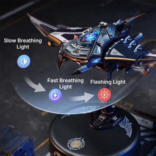 Manta raja je 3D mechanické puzzle, ktoré vás pozýva k tomu, aby ste boli svedkami tohto fascinujúceho pohybu zblízka. Táto replika manty vnesie do vášho interiéru eleganciu a kúzlo morského života. Tento miniatúrny 3D model si zostavíte sami a výsledok vás očarí nielen pohybom, ale aj svetlom a atmosférou. Vďaka charakteristickému šípovému vzoru a plynulému pohybu plutiev model zachytáva zdanlivú beztiažnu eleganciu skutočnej manty. Priložený podstavec model zdvihne a stlačením tlačidla sa prsné plutvy začnú hladko kývať, chvost jemne kymáca a LED svetlá pulzujú v rytme pohybu. Druhým stlačením sa spustí rýchlo blikajúci a plutvami zrýchľujúci režim „Burst Mode“, ktorý napodobňuje náhly nárast rýchlosti manty. Tento model je fascinujúcou kombináciou technickej precíznosti a krásy morského života. Skvele sa hodí ako dekorácia, dizajnový doplnok alebo originálny darček pre milovníkov prírody a mechanických modelov. Hlavné vlastnosti: 108 dielikovdoba skladania 2 hodinymechanický pohyb plutiev a chvosta