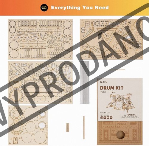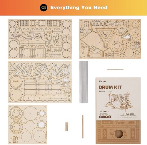 Detailný model hudobného nástroja. Patria do radu skladačiek, ktoré sú určené na vystavenie, nie sú interaktívne a nemajú žiadne pohyblivé diely. Skladačka je dodávaná v nezloženom stave, balená v kartónovej obálke. Vybavené detailným návodom na zostavenie. Hlavné vlastnosti:246 precízne vyrezaných dielikovstredná obtiažnosť zostavenia