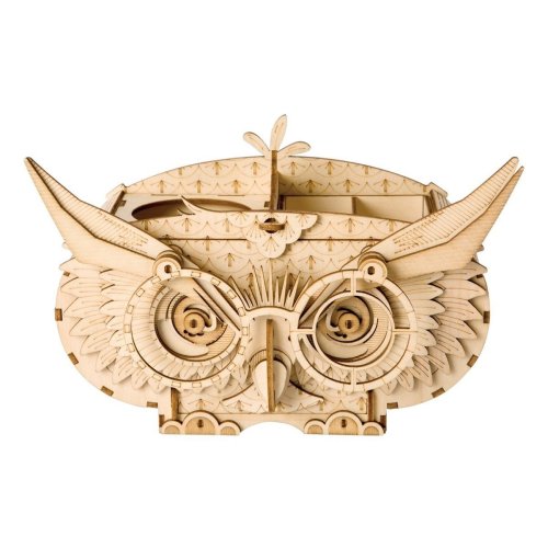 Detailný model stojana na ceruzky, dekorovaného tvárou sovy. Patria do radu skladačiek, ktoré sú určené na vystavenie, nie sú interaktívne a nemajú žiadne pohyblivé diely. Skladačka je dodávaná v nezloženom stave, balená v krabici. Vybavené detailným návodom na zostavenie. Hlavné vlastnosti:61 precízne vyrezaných dielikovnízka obtiažnosť zostavenia