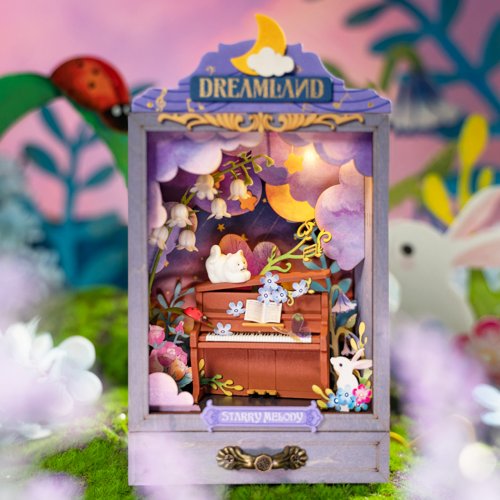 Rozhrňte pomyselnú oponu a rozohrajte okázalé predstavenia v skrinkových dioramatech. Vytvorte rozprávkové útočisko pre Vaše figúrky a nechajte sa pohltiť ich kúzelnou atmosférou! Skrinka je pre väčší efekt vybavená hrejivým svetlom, ktoré dá vyniknú hĺbke scény. V spodnej časti navyše ukrýva šuplík s malou priehradkou, do ktorej je možné uložiť drobné upomienkové predmety, mince, alebo šitie. Vnútorný priestor je pred prachom chránený praktickým výsuvným panelom z číreho plastu. Stavba zahŕňa prípravu dielov z preglejky, lepenie papierových potlačí a kartónových dielov. Budete k nej potrebovať iba nožnice, všetky ostatné potreby sú už súčasťou balenia. Elektrické súčasti LED osvetlenia sú už zostavené, pripravené na finálnu vstavbu. Stavebnica obsahuje aj gombíkové batérie (2×CR2032) slúžiace na napájanie. Dodávané s podrobným návodom na zostavenie. Hlavné vlastnosti:stavebnica vrátane príslušenstva na zostavenieodhadovaná doba zostavenia 1 hvhodné pre figúrky o veľkosti 7–9 cmLED osvetlenie (2×CR2032 batérie sú súčasťou balenia)drobný úložný priestor cca 10×5×1 cm