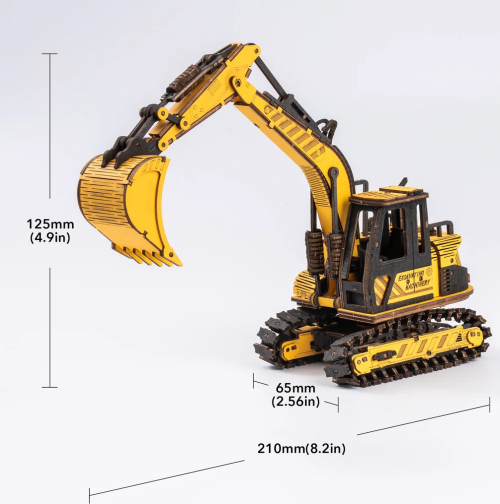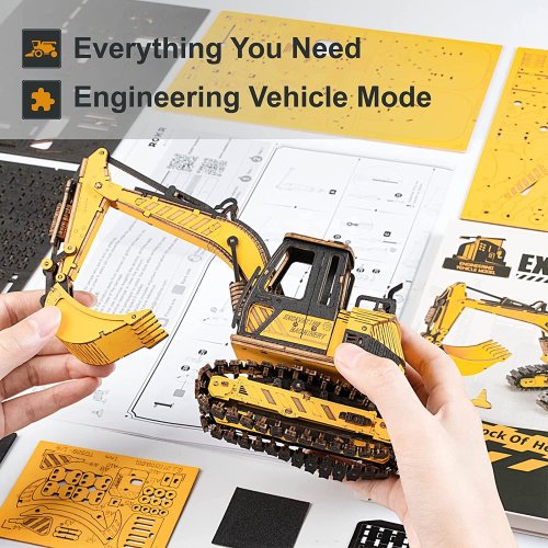 Obtiažnosť: 3 z 5 (podľa rozdelenia Robotime). Orientačná doba na zloženie: 2,5 hodiny. Rad Engineering Vehicles obsahuje 5 produktov: vysokozdvižný vozík TG413K, bager TG508K, buldozér TG509K, sklápač TG603K, cestný valec TG701K. Rozmer zloženého puzzle cca 21 x 7 x 13 cm