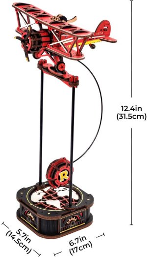Pripútajte sa do červeného dvojplošníka s otvoreným kokpitom, točiacim sa vrtuľou a pohyblivými kormidlami. Lietadlo sa nakláňa a pohupuje, ako by lietalo medzi oblakmi a vezme vás na dynamické dobrodružstvo. 3D drevená puzzle sada s mechanickými prevodmi. Gravitačné kyvadlo. Laserom predrezané dieliky z kvalitnej lipovej preglejky na stavbu svojpomocne, lepidlo nie je potrebné. Rozvíja technické myslenie, predstavivosť, cit pre detail a jemnú motoriku. Prehľadný obrázkový návod krok za krokom, vrátane QR kódov pre zobrazenie videonávodu. Obtiažnosť: 2 z 5 (podľa rozdelenia Robotime).
