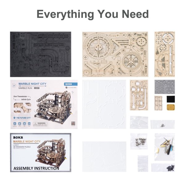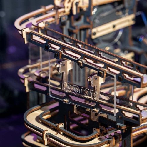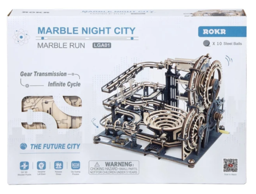 Guľôčková dráha Robotime-ROKR Marble Night City je založená na skvelom ľudskom inžinierstve. Spája v sebe krásu vedy a strojov a zahŕňa veľa malých prístrojov. Zostavte sadu, zatočte kľukou a sledujte, ako sa guličky bláznivo kotúľajú po dráhach a klopených zákrutách.