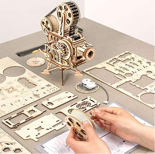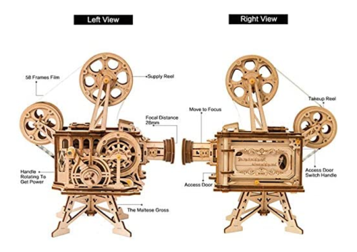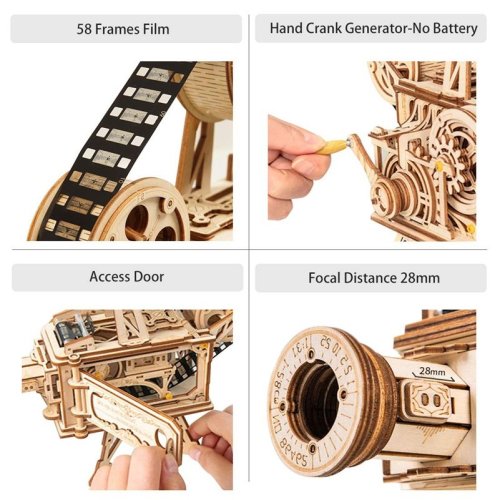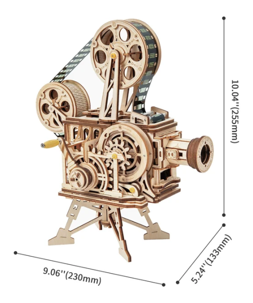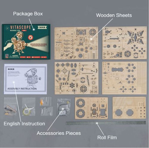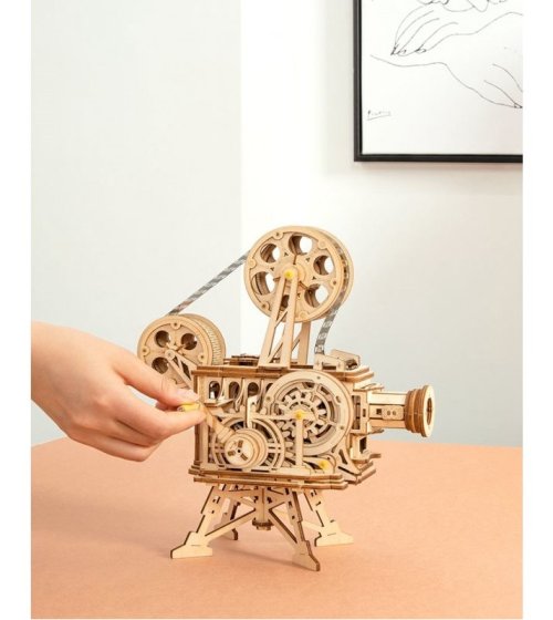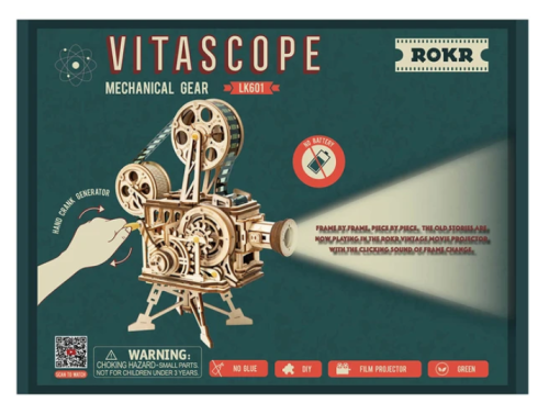 Robotime-ROKR DIY filmový projektor Vita scope LK601 dokáže skutočne prehrať film! Klasický dizajn s ručným kľukovým generátorom uspokojí milovníkov filmov pri výrobe aj hraní. Zostavte mechanizmus kúsok po kúsku a nasaďte čiernobiely film. Užite si kino spoločne s priateľmi a rodinou!
