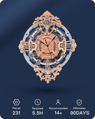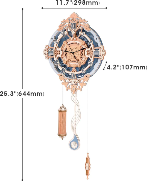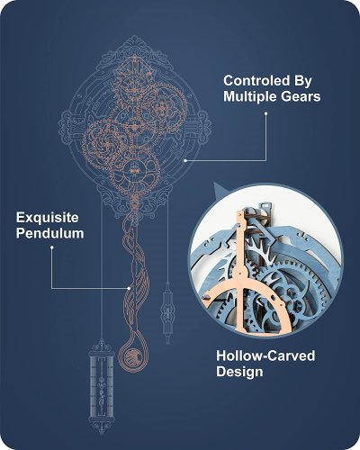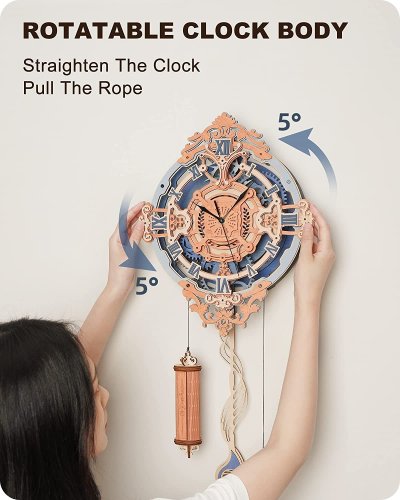 3D puzzle model nástenných hodín je dokonalou kombináciou stroja a romantiky. Ide o skutočné hodiny s kyvadlom, ktoré vám po dokončení ukazujú presný čas.
