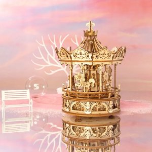 Detailný model klasického kolotoča. Skladačky hracích skriniek Robotime sú ponúkané v mnohých podobách, prírodných aj farebných, líšiacich sa nápaditými pohyblivými detailmi sprevádzajúcimi zvuk. Nezaskočí Vás svojou náročnosťou a po zostavení skrášli poličku. Nechajte sa unášať známymi melódiami, každá skrinka hrá inú, zodpovedajúcu svojej výslednej podobe. Kvalitné naťahovacie 18 tónové strojčeky s japonskými komponentmi zaručujú čistý a dostatočne hlasný prejav. Skladačka je dodávaná v nezloženom stave, balená v krabici. Vybavené detailným návodom na zostavenie. Hlavné vlastnosti:romantická melódia384 precízne vyrezaných dielikovstredná obtiažnosť zostavenia