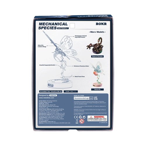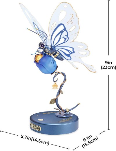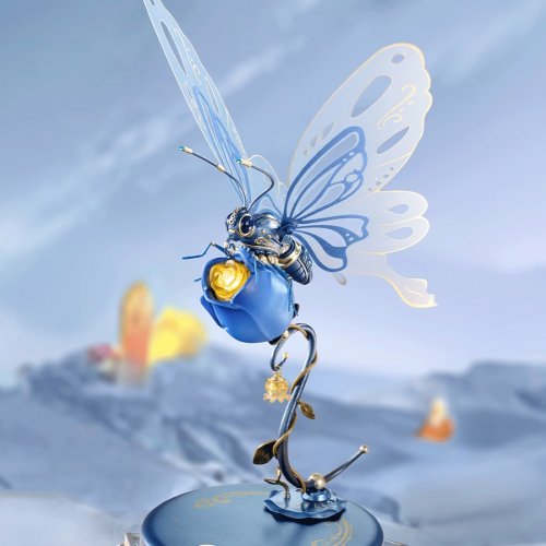 Príroda je plná tajomnej krásy - a ROKR teraz obracia svoju pozornosť k svetlým, ľahkým motýľom a prináša vám nový mechanický druh. Telo motýľa je pevne spracované z odolného materiálu ABS, zatiaľ čo jeho trblietavé mäkké krídla sú z pružného PVC. Špeciálna tlačová metóda pridáva elegantné šampanské vzory a na jeho chrbte žiari trblietavý drahokam, ktorý sa leskne na slnku. Motýľ pristáva na kvete ruže s jemnými úponkami. Položte motýľa na základňu, zapnite ho a jemne sa ho dotknite - uvidíte, ako mu začnú mávať krídla. Ako sa mení frekvencia mávania, ruže aj jeho tykadlá sa jemne rozsvecujú, akoby dýchali a ožívali – av slnečnom svetle sa celá scéna nádherne trblieta. Presne vyrezané dieliky laserom. Zostavenie bez použitia lepidla. Rozvíja technické myslenie, predstavivosť, cit pre detail a jemnú motoriku. Obtiažnosť: 2 z 5 (podľa rozdelenia Robotime).