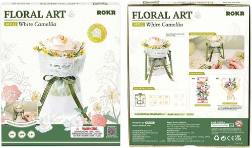 Model, inšpirovaný klasickým francúzskym kvetinovým designom, zachytáva čistotu a pôvab kvetu kamélie. Viac ako len puzzle - Biela kamélia je symbolom krásy a pokoja. Jej jemne vrstvené okvetné lístky, elegantne zakrivené stonky a doplnky v podobe konvaliniek a nočne kvitnúceho jazmínu tvoria harmonické a vycibrené aranžmány. Celú kvetinu dopĺňa jemne zdobený stojan s vetvičkami a kvetinovými vzormi, ktorý podčiarkuje sofistikovanosť celej kompozície. Kvalitné, bezpečné a netoxické materiály. Rozvíja technické myslenie, predstavivosť, cit pre detail a jemnú motoriku. Obtiažnosť: 2 z 5 (podľa rozdelenia Robotime).