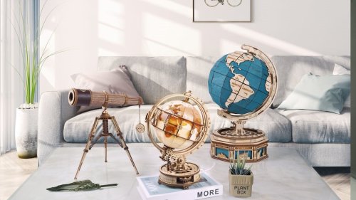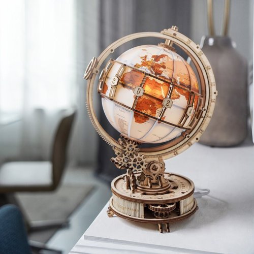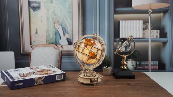 Robotime-ROKR svietiaci Globus je drevený mechanický model zemegule v klasickom štýle zo série Curious Discovery.