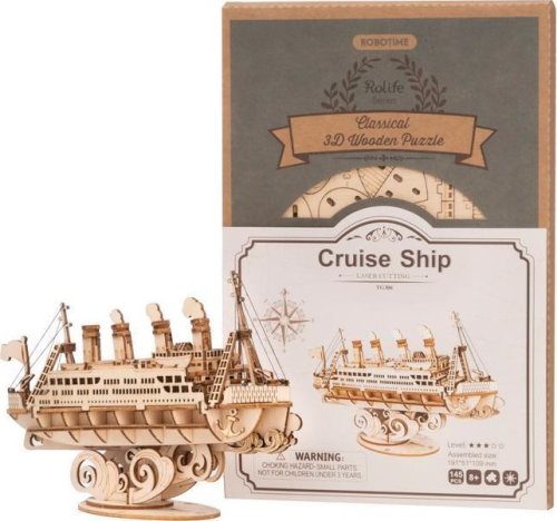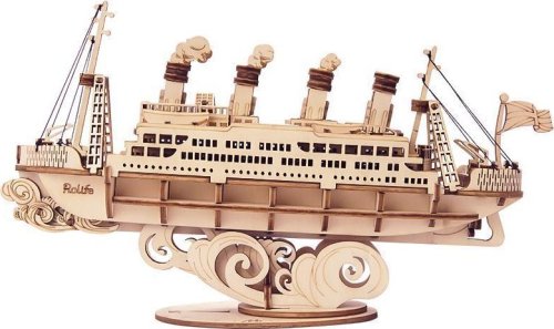 Drevený model výletného plavidla s praktickým stojanom.
