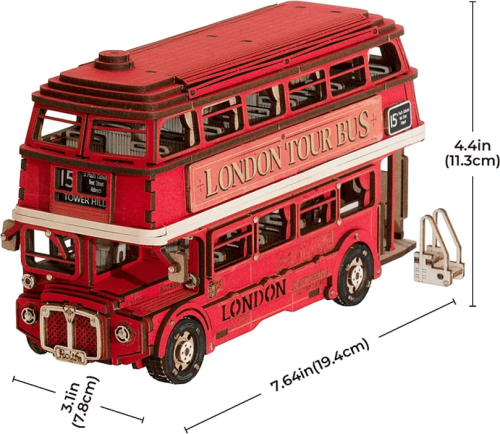 A ako inak ako na palube vyhliadkového červeného poschodového autobusu. Londýnsky double-decker je úzko spätý s históriou mesta a je obľúbený nielen u jeho obyvateľov ale aj u turistov. 3D model je spracovaný do najmenších detailov počnúc vintage prevedením prednej časti, otočnými kolesami, plne vybaveným interiérom a žiarivou červenou farbou. Má dokonca samostatné schodíky pre pohodlný nástup a otvorenú zadnú plošinu. Prezrite si rušné ulice Soho, historické uličky Westminsteru alebo bulváre Kensingtonu. Skladanie 3D skladačky podporuje rozvoj jemnej motoriky, priestorového myslenia a trpezlivosti. Pozvite svoju rodinu alebo priateľov a užite si zábavné tvorenie bez nutnosti použitia lepidla alebo nástrojov. Všetky diely skladačky sú presne vyrezané a očíslované a ľahko do seba zapadnú, aby výsledok bol stabilný a odolný. Skladačka je dodávaná v nezloženom stave, zabalená v krabici s podrobným návodom na zostavenie.
