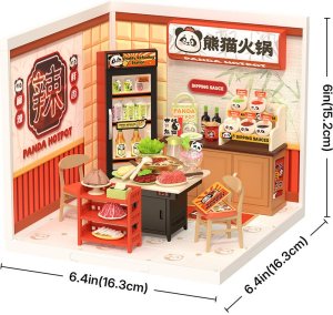 Medzi lahodné detaily patrí realisticky spracovaná hot pot zostava, plne zásobená chladnička a bohato vybavená stanica s omáčkami. Na stole nájdete tenké plátky mäsa, čerstvú kapustu, huby a mnoho ďalšieho, všetko pripravené na ponorenie do horúceho vývaru. Z dochucovacej stanice si môžete nabrať cesnakovú pastu, ustrícovú omáčku, nasekanú jarnú cibuľku a ďalšie dochucovadlá, ktoré pozdvihnú váš kulinárny zážitok na novú úroveň. A čo nápoje? Chladnička je plná vychladeného mlieka, plechoviek limonád i fľaškových džúsov – dokonalá bodka za celou hostinou. Obtiažnosť: 1 z 5 (podľa rozdelenia Robotime). Orientačná doba na zloženie: 1 hodinu.