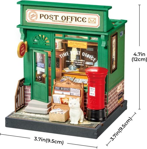 V čase pred e-mailami a chatami bola pošta srdcom každého mesta či dediny – miestom, ktoré udržiavalo spojenie medzi ľuďmi, šírilo správy a vytváralo komunity. Prepracovaný model s realistickými detailmi: klasické poštové cedule, nápisy na oknách, písací stroj, balíčky s leteckou poštou, novinový stojan, poštovú schránku a stôl poštmajstra. Nechýba ani tehlové zdobenie, schodisko a roztomilá mačka, ktoré dotvárajú útulnú atmosféru malomestského života. Obtiažnosť: 1 z 5 (podľa rozdelenia Robotime). Orientačná doba na zloženie: 1,5 hodiny.