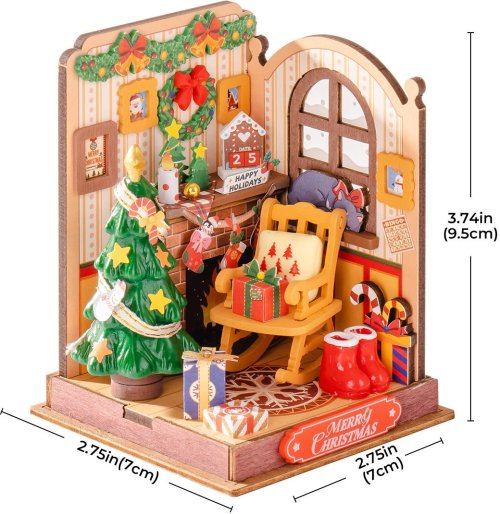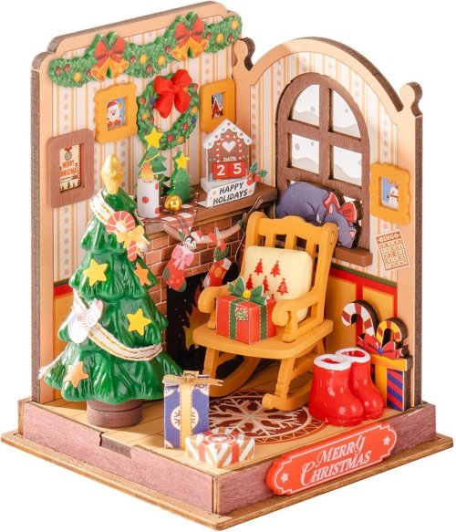 Na rímse krbu visí kalendár s dátumom 25. decembra, okolo sa trblietajú girlandy, veniec, vianočný stromček a horí sviečka, ktorá dotvára hrejivú atmosféru. Starý otec sa usadzuje do hojdacieho kresla, zatiaľ čo rodina počúva jeho spomienky na minulé sviatky. Na stenách visia fotografie, pod stromčekom čakajú darčeky a sladkosti, pri okne spokojne odpočíva mačka a všetko zahaľuje zimný koberec so snehovými vločkami. Obtiažnosť: 1 z 5 (podľa rozdelenia Robotime). Orientačná doba na zloženie: 1 hodinu.