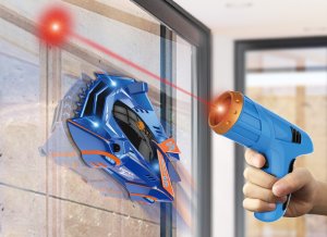 Autíčko prenasleduje laser a dokáže jazdiť po stenách aj po strope.