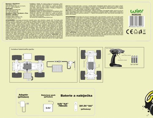 auto má batériový pack + ovládač 3x1,5V 'AA' (sú súčasťou) doba dobíjania 5-6 hodín Výdrž: až 20 min