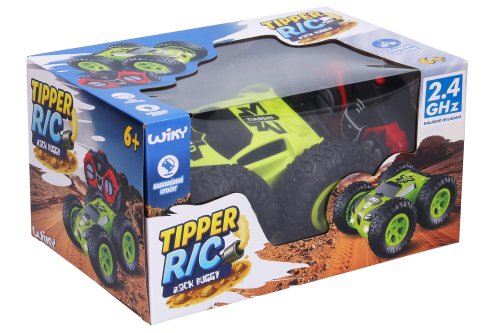 Rock Buggy Tipper RC na diaľkové ovládanie. Rozmery 15x14x6 cm. Len zelená farba. Frekvencia 2.4GHz. Svetelné efekty. Batériový pack 3.7V 500mAh do auta súčasťou, 2xAA do ovládača nie sú súčasťou. USB kábel súčasťou. Prepínač ON/OFF na spodnej strane auta. Prevádzka 20 min, nabíjanie 2 h.