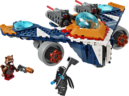 Stavebnica inšpirovaná filmom Strážcovia galaxie od štúdia Marvel predstavuje skvelý darček pre milovníkov filmov, lietadiel a zostaviteľných hračiek s motívom superhrdinov. Súčasťou tryskáča je otvárací kokpit s priestorom pre minifigúrku, 2 pružinové vystreľovače hore a supersilný 6násobný vystreľovač pod oboma krídlami. Nechýbajú ani 2 minifigúrky: Rocket s Blasterom a Ronan Žalobca s mocným kladivom Cosmi-Rod. Pre ešte viac digitálnej zábavy je tu zábavná a intuitívna aplikácia LEGO Builder, kde môžu stavitelia približovať a otáčať modely v 3D a sledovať postup.