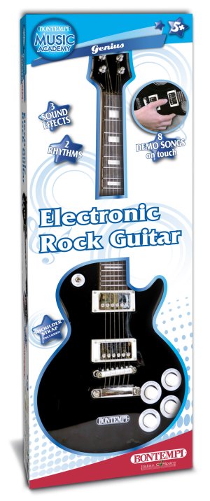 Elektronická rocková gitara "Gibson" - môžeš si vybrať s 8 demosongy alebo 2 demo songy a 2 rytmy, 3 zvukové efekty, kontrola hlasitosti, pás cez rameno, automatické vypínanie.