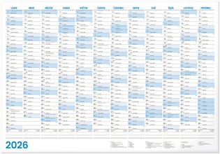 Praktický ročný kalendár na rýchle zaznamenanie a vyhľadanie poznámky. Obsahuje kalendárium s českými menami a svetovými sviatkami na bielom pozadí.