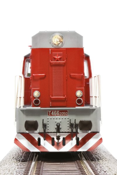Motorová lokomotíva Československých štátnych dráh T 466 2050. Nový design! Verzia 1. série s hladkou bočnou stenou kabíny. Detailne prepracovaný model s mnohými samostatne použiteľnými zásuvnými dielmi. Prehľadný pohľad do kabíny rušňovodiča. Filigránové bezpečnostné zábradlie. Súpravy kolies s nízkymi prírubami kolies. Inštalované osvetlenie kabíny vodič e. V 70. rokoch 20. storočia mali bývalé Československé štátne dráhy (ČSD) veľmi potrebovali výkonné nákladné vlakové dieselové lokomotívy pre stredne ťažké posúvacie a traťové služby. Z priemyselnej lokomotívy typu T 448 bol preto odvodený ľahší variant T 466.2. Vyrábala sa v ČKD v Prahe od roku 1977 v deviatich sériách (každá s drobnými odlišnosťami) v počte 494 kusov a ČSD ju nasadzovali do prevádzky až do roku 1986. Hlavné vlastnosti: spojka Hriadeľ NEM 362 s kinematikou KKminimálny rádius 328 mm koncové svetlá, v závislosti od smeru jazdyzvuk - ANOLED svetlomet - ÁNO počet hnaných náprav 4počet náprav s trakčnými pneumatikami 1 digitálne rozhranie - PluX22typ dekodéra - MS450P22 Dokumentácia: návod na obsluhu (DE, EN,SK)všeobecný dodatok (DE, EN, SK) náshradných dielov (DE, EN)konfiguračné a funkčné kľúče (DE, EN)