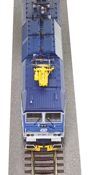 Predstavujeme Vám model elektrickej lokomotívy 371 003-5 Českých dráh v prevedení Najbrt s bohatou výbavou a funkciami. Model sa vyznačuje detailným spracovaním strechy s lamelami ventilátora a inovatívne upevnenými zberačmi, detailným prevedením podvozku s lúčovými kolesami a mnohým ďalším vybavením, ako je digitálne ovládané osvetlenie kabíny, ovládacieho panelu a strojovne. Čo sa týka zvuku, nechýba ROCO Dynamic-Sound System. Dizajnové prevedenie Najbrt bolo zavedené Českými dráhami v roku 2008 a zahŕňa špecifickú farebnú schému a dizajn. Lokomotívy v prevedení Najbrt majú typicky svetlo šedý základ s modrými prvkami, ako sú lichobežníky na bokoch alebo modré pruhy. Tento štýl sa týka nielen exteriéru, ale aj interiéru, vrátane farieb poťahov sedadiel a celkového prevedenia interiéru. -Praha. Rozšírenie spojenia Děčín-Praha na maximálnu rýchlosť 160 km/h si vyžiadalo modernizáciu niektorých lokomotív. Od roku 1994 bolo šesť českých lokomotív radu 372 upravených pre rýchlejšiu medzinárodnú osobnú dopravu a prevádzkované pod označením radu 371 "Turbobastard". Prestavané stroje previezli ČD do pražskej vozovne. Špecifikácia: dĺžka s nárazníkmi 193 mm spojka - hriadeľ NEM 362 s kinematikou KKminimálny rádius 358 mm zotrvačník - anonapájací zdroj US - 230 Vnapájanie DCdigitálne ovládanie počet náprav s trakčnými pneumatikami - 1počet poháňaných náprav - 2 p dekodéra - MS450P22 3 predné svetlá a 2 koncové svetlá - svieti v závislosti na smere jazdyLED svetlomet – anofunkcia prídavného osvetlenia - anovnútorné osvetlenie – áno, digitálne ovládané zvuk – áno, ROCO Dynamic-Sound System Hlavné vlastnosti: dizajnové prevedenie Najbrtdetailne prepracovaný modelbohatá výbava a funkcie Dokumenty: zoznam a funkcie klávesov ( DE, EN, FR)zoznam a funkcie kláves (DE, EN, FR) návod na obsluhu (DE, EN, SK)zoznam náhradných dielov (DE, EN)