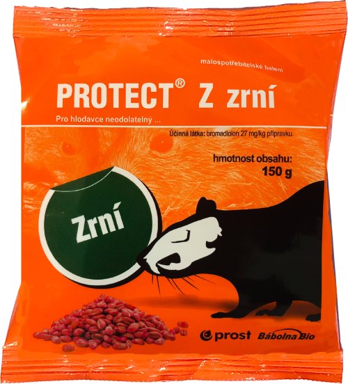 Rodenticídny prípravok vo forme červeno sfarbeného zrna pre použitie širokou verejnosťou na reguláciu výskytu škodlivých hlodavcov v budovách a ich blízkom okolí. Účinná látka: bromadiolon. Veľkosť balenia 150 g (3x50 g).