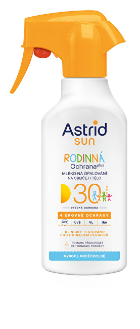 Astrid Sun ponúka oveľa viac než len základnú ochranu proti slnku. Poskytuje optimálnu ochranu pred 4 hlavnými typmi slnečného žiarenia (UVA, UVB, VL*, IRA*), ktoré poškodzujú pokožku. Vďaka kyseline hyaluronovej navyše udržuje pokožku dlhodobo hydratovanú. Je bezpečné a šetrné pre koralové útesy**.*In vitro test na účinnej látke.**V súlade s havajským zákonom o koralových útesoch. Neobsahuje oxybenzón a oktinoxát.