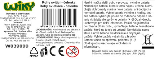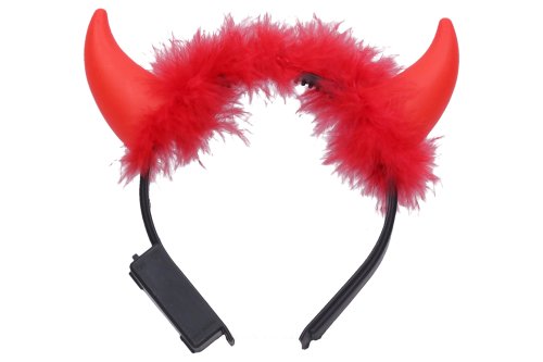 Rohy čertovské blikajúce s ozdobou 17x17 cm. Súčasťou batérie 3x LR44(AG13)