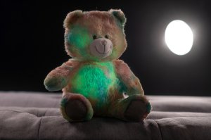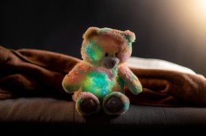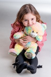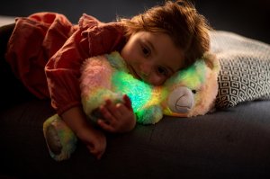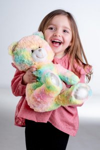 Roztomilý plyšový medvedík je vyrobený z kvalitnej jemnej plyšu. Tento plyšový kúsok je ideálnym darčekom! Medvedík Rojko dúhový pomáha deťom ľahšie zaspať. Po stlačení labky hrá pokojnú relaxačnú hudbu. V tme svietia a menia farby. Veľkosť medveďa: 40 cm Vhodné pre deti od 3 rokov