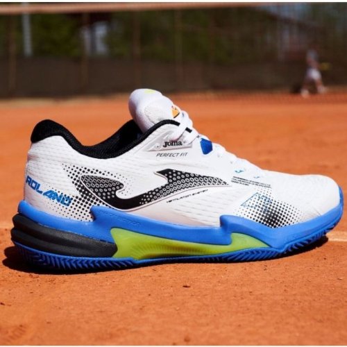 Pánske tenisové topánky JOMA Roland Men 2402 sú navrhnuté pre pravidelných a výkonnostných hráčov a sú vhodné na antukový povrch. Zvršok je vyrobený z ľahkého a priedušného nylonu s perforáciou VTS, aby topánky poskytovali čo najlepšie odvetrávanie. Na dosiahnutie potrebného prispôsobenia sa nohe je na strategických miestach tepelne utesnený syntetický materiál JOMA SPORTECH. Tomu dopomáha aj spevnený strih s polstrovaným jazykom a šnurovaním PERFECT FIT. V špičke sa nachádza vstrekovaná guma technológie PROTECTION na jej spevnenie a väčšiu ochranu pri náraze. Medzipodrážka je vyrobená z ľahkého, pružného phylonu s technológiou STABILIS pre maximálne odpruženie, stabilitu a pohodlie pri hre. Podošva DURABILITY je vyrobená z odolnej gumy, ktorá poskytuje vysokú úroveň odolnosti vyžadovanú na kurtoch aj s tvrdým povrchom.