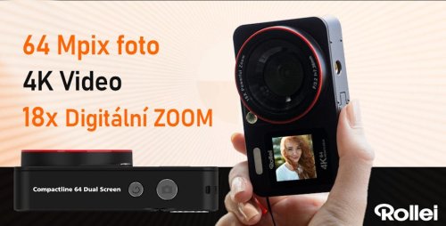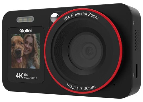 Rollei Compactline 64 Dual Screen je ideálny fotoaparát pre všetkých, ktorí oceňujú ostré snímky , vysoké rozlíšenie videa a maximálnu flexibilitu . Vďaka inovatívnemu systému dvoch displejov - predného 1,4 "a zadného 2,8" LCD - môžete ľahko zhotovovať selfie, natáčať vlogy aj komponovať tradičné zábery bez nutnosti prepínania režimov.
