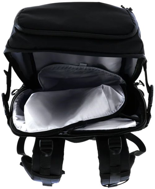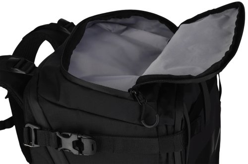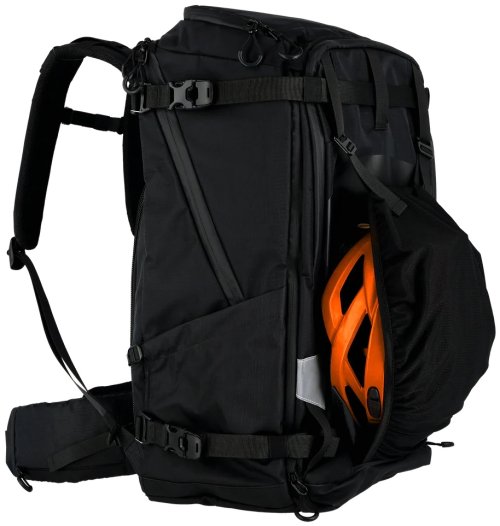 Na prednej strane je skryté nosné sieťovanie na prepravu helmy alebo bundy. Bočné strany batohu majú univerzálne držiaky vhodné pre statív, trekingové palice alebo fľašu s vodou. Všetky zipsy sú vodeodolné a batoh obsahuje pláštenku proti dažďu schovanú v spodnej časti.