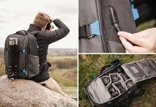 Medzi hlavné prednosti patrí zabudovaný USB port na dobíjanie zariadenia, úchyt na statív a sieťované vrecko na nápoje. Batoh je navrhnutý s ohľadom na pohodlie pri nosení, má priedušné polstrovanie a nastaviteľné popruhy. Pre ochranu proti nepriaznivému počasiu je vybavený vodeodolnými zipsami a pláštenkou uloženou v spodnej časti.