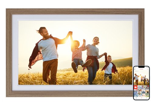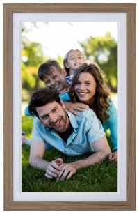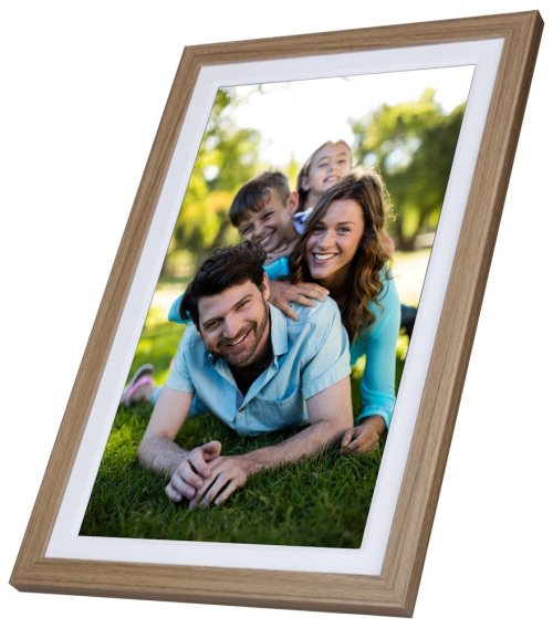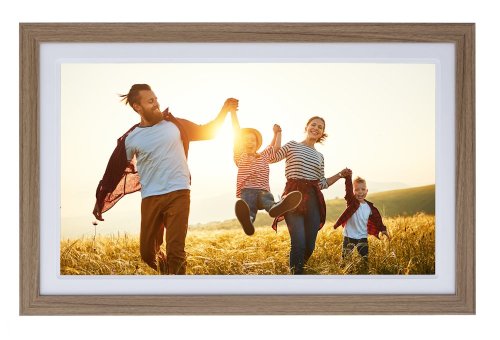 Rámček vyniká veľkým 32GB interným úložiskom pre tisíce fotografií a videí, ktoré je možné doplniť externou SD kartou až do 128 GB . Štýlový dizajn v drevenej optike duba s bielym paspartou dokonale zapadne do každého interiéru.