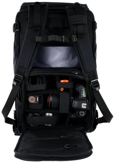 Vnútorný priestor s objemom približne 12 litrov poskytuje dostatočnú ochranu pre profesionálne fotoaparáty a objektívy. Flexibilné prepážky a elastické popruhy zaisťujú, že vybavenie zostane na svojom mieste a je chránené pred poškodením počas transportu. Prístup k technike je riešený horným celootváracím vekom, ale navyše disponuje praktickým bočným rýchlym prístupom , ktorý umožňuje vybrať fotoaparát bez toho, aby ste museli tašku celú otvárať alebo pokladať na zem.