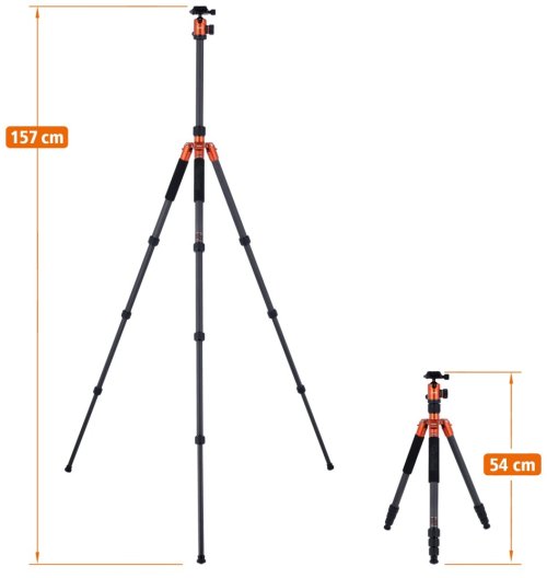 Kompaktný, ľahký a odolný statív vyrobený z ôsmich vrstiev karbónu . Je vybavený praktickými rýchloupinákmi na uzamknutie nožičiek. Statív taktiež ponúka možnosť otočenia stredovej časti pre makro fotografie a použitie ako monopod. Statív je doplnený guľovou hlavou . Súčasťou balenia je aj puzdro na statív.