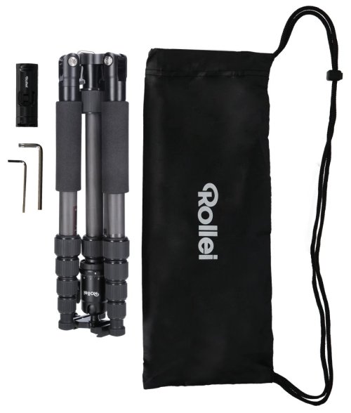 Odľahčený karbónový statív od spoločnosti Rollei ponúka hlavu s rýchloupínacou doštičkou. Základnú statívu sú gumové nožičky, gumové koncovky nôžok môžete sňať a pre lepšiu stabilitu ho môžete zapichnúť do zeme. Nožičky statívu sú výsuvné, v zloženom stave majú dĺžku 34 cm, v rozloženom 142 cm. Celková hmotnosť činí 980 ga statív unesie až 8 kg! Tento kompaktný a robustný statív ocení každý fotograf. Môže byť použitý aj ako monopod.
