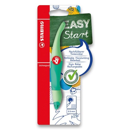 [pre pravákov], * prvý roller v ergonomickom tvare, vo variante zvlášť pre ľavákov a pravákov, * moderná alternatíva plniaceho pera, * tvarovaný úchop z nekĺzavého materiálu, * jedinečný dizajn, * nový hrot s každou novou náplňou, veľmi jednoduchá výmena, * ZMIZÍKOVATEĽNÝ MODRÝ INKOV Uvoľnené držanie napomáha proti predčasnej únave svalstva ruky a bolestiam ruky pri písaní (prípadné bolesti chrbta a hlavy). Vďaka guličke v náplni ľahko kĺže po papieri, ľahká a, komfortná manipulácia. , [0,5 mm]šírka stopy 0,5 mm, Náhradná náplň STABILO EASYoriginal. Na vymazanie atramentovej stopy odporúčame zmizík STABILO ColorKilla., Technológia rollera umožňuje školákom písanie bez škrabania na papieri. Nerobí kance, pri písaní ľahko kĺže a aj výmena náplne je úplne jednoduchá a bez špinavých rúk. , STABILO EASYoriginal intuitívnym spôsobom NAPOMÁHA SPRÁVNEMU DRŽANIU, je preto VHODNÝ AKO PRE ZAČÍNAJÚCE DETI, TAK I PRE STARŠÍCH ŠKOLÁKOV. Jeho úchopová zóna je vytvarovaná, zvlášť PRE PRAVÁKOV a PRE ĽAVÁKOV. , Školákom, ktorí sa písaním začínajú a potrebujem širšiu stopu, je určená náplň so šírkou stopy Medium (0,5 mm). Ak by stopa bola tenká, začali by na písaciu potrebu tlačiť a tým sa zbytočne stresovali. Dokúpiť je možné aj náplň s užšou šírkou stopy Fine (0,3 mm), ktorá je odporúčaná starším školákom zhruba od 3. triedy.