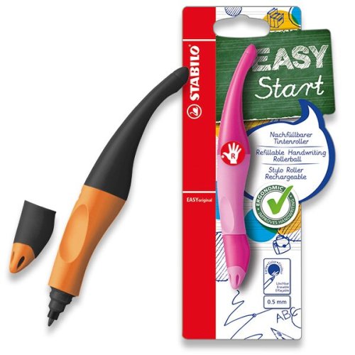 [pre pravákov], * prvý roller v ergonomickom tvare, vo variante zvlášť pre ľavákov a pravákov, * moderná alternatíva plniaceho pera, * tvarovaný úchop z nekĺzavého materiálu, * jedinečný dizajn, * nový hrot s každou novou náplňou, veľmi jednoduchá výmena, * ZMIZÍKOVATEĽNÝ MODRÝ INKOV Uvoľnené držanie napomáha proti predčasnej únave svalstva ruky a bolestiam ruky pri písaní (prípadné bolesti chrbta a hlavy). Vďaka guličke v náplni ľahko kĺže po papieri, ľahká a, komfortná manipulácia. , [0,5 mm]šírka stopy 0,5 mm, Náhradná náplň STABILO EASYoriginal. Na vymazanie atramentovej stopy odporúčame zmizík STABILO ColorKilla., Technológia rollera umožňuje školákom písanie bez škrabania na papieri. Nerobí kance, pri písaní ľahko kĺže a aj výmena náplne je úplne jednoduchá a bez špinavých rúk. , STABILO EASYoriginal intuitívnym spôsobom NAPOMÁHA SPRÁVNEMU DRŽANIU, je preto VHODNÝ AKO PRE ZAČÍNAJÚCE DETI, TAK I PRE STARŠÍCH ŠKOLÁKOV. Jeho úchopová zóna je vytvarovaná, zvlášť PRE PRAVÁKOV a PRE ĽAVÁKOV. , Školákom, ktorí sa písaním začínajú a potrebujem širšiu stopu, je určená náplň so šírkou stopy Medium (0,5 mm). Ak by stopa bola tenká, začali by na písaciu potrebu tlačiť a tým sa zbytočne stresovali. Dokúpiť je možné aj náplň s užšou šírkou stopy Fine (0,3 mm), ktorá je odporúčaná starším školákom zhruba od 3. triedy.