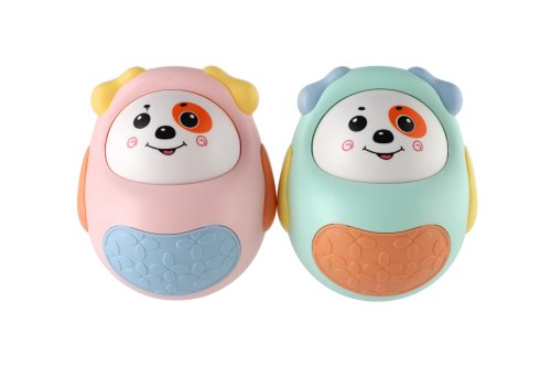 Veselý psík, ktorý sa nikdy neprevráti! Táto roztomilá plastová hračka v štýle „roly poly“ sa po postrčení hojdá zo strany na stranu a vydáva jemné zvuky, ktoré zaujmú pozornosť najmenších detí. Pomáha rozvíjať sluch, zrak a koordináciu pohybov. Veľkosť hračky: 10 cm Vhodné pre deti od 3 mesiacov
