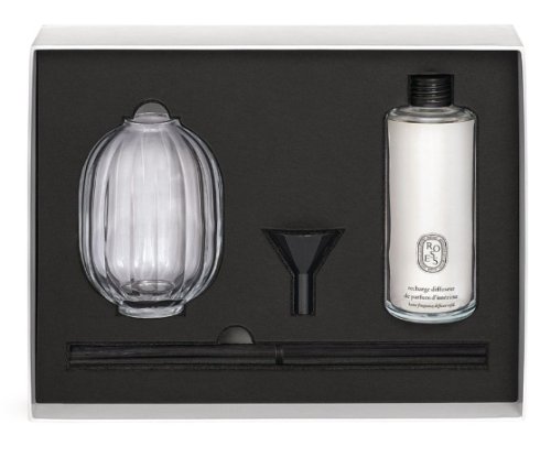Difúzer Roses od Diptyque je poctou kráľovnej všetkých kvetov a muzea parfumérov. Prevoňajte svoj domov vôňou čerstvo narezanej kytice májových a damašských ruží, ktorých aróma povzbudí všetky vaše zmysly. Luxusný difuzér je perfektnou dekoráciou a vytvorí v každom interiéri príjemnú atmosféru . Použitie: Pri prvom použití nechajte ratanové rákosové tyčinky nasiaknuť, po 5-6 hodinách ich otočte, aby sa vôňa začala šíriť. Pre intenzívnejšiu vôňu môžete akciu opakovať. Farba difuzéra sa vzhľadom na obsah zložiek prírodného pôvodu môže v priebehu času zmeniť bez toho, aby tento jav ovplyvnil kvalitu vône.